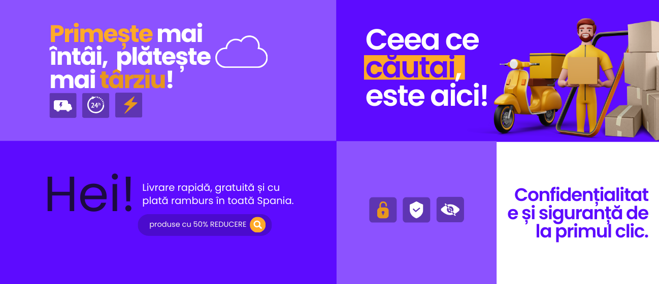 Plătești comanda doar atunci când o primești acasă. Fără riscuri sau avansuri.